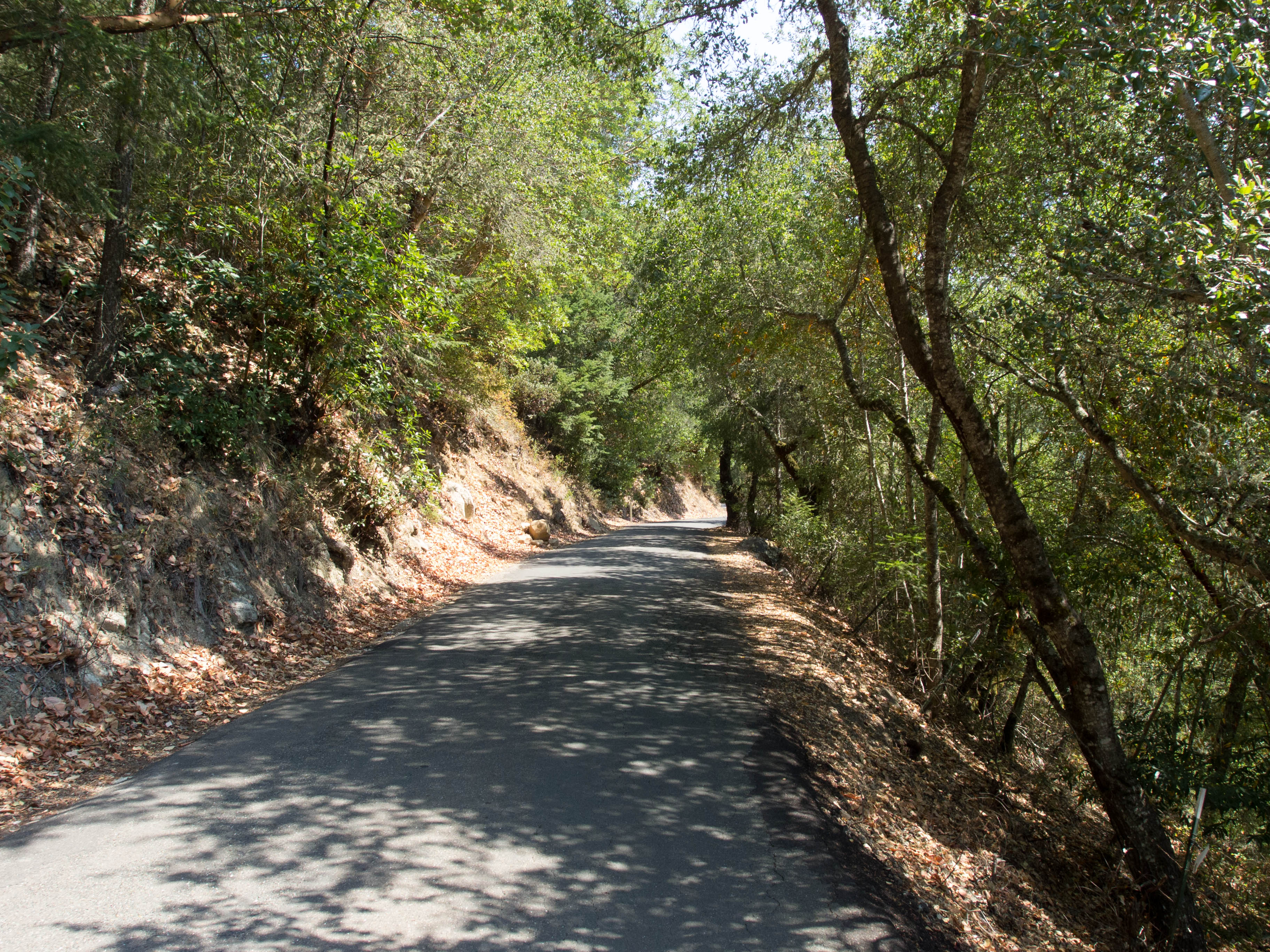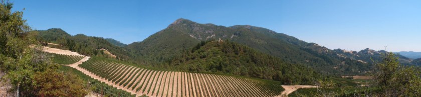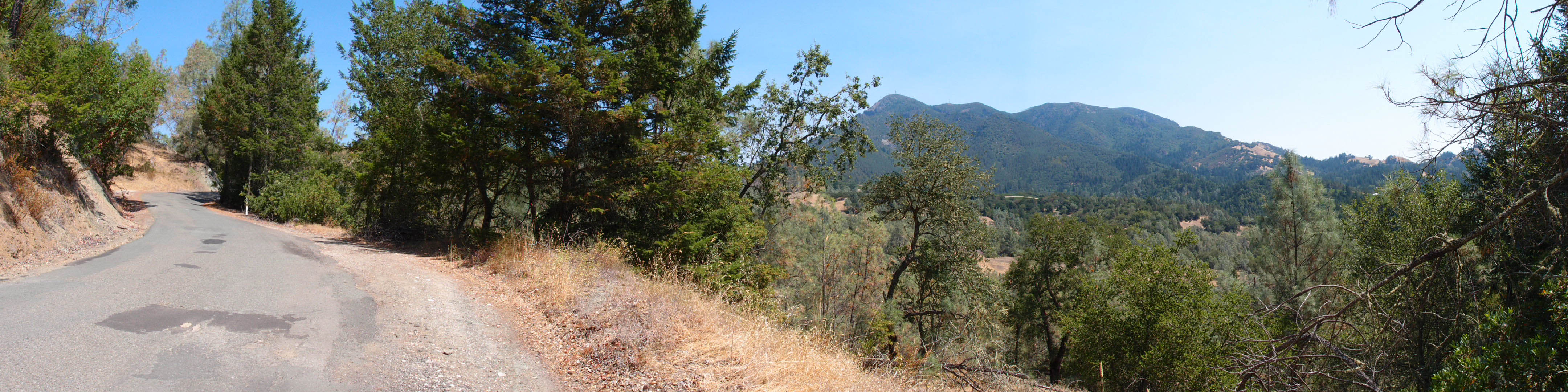 From the beginning the road climbed and I hate to say it, but it wasn’t long before I was off the bike and pushing it up…and up, and up. It quickly became obvious that the was going to be a climb of epic proportions. The next photo shows Mt. St. Helena and apparently the road runs just below it.