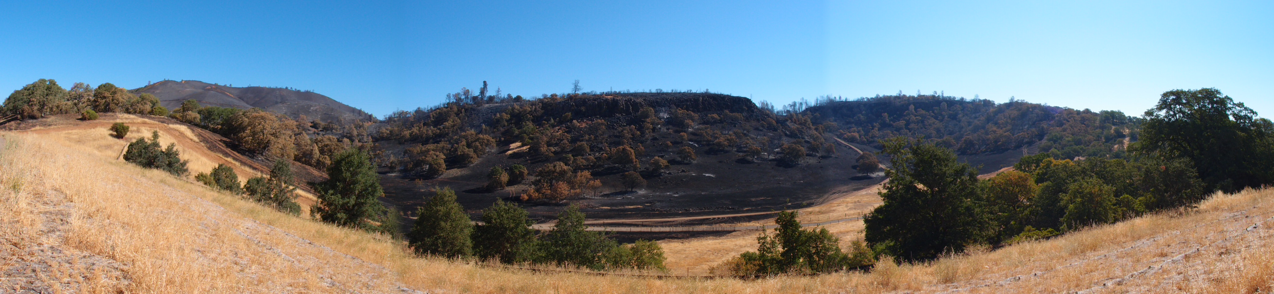 It was a pretty day out, a little bit of a headwind, and those damn hills! As I got past the last hill beyond the junction with Hwy 16 I began a blissful descent. There was a persistent haze over the area, due, I later found out, to the Ponderosa Fire burning between Chico and Lassen Nat’l forest. Exactly where I’m hoping to go to. Ah well…