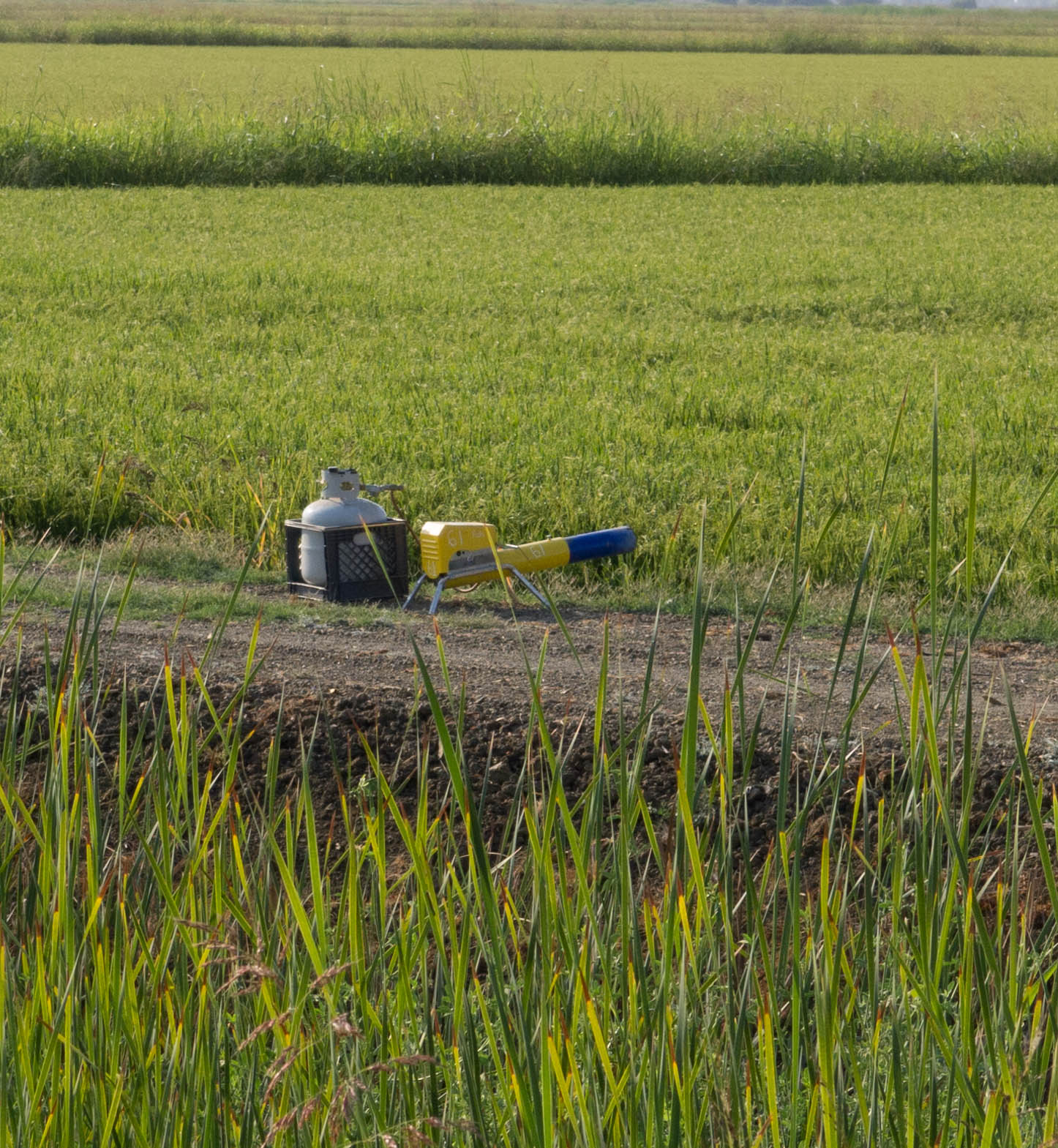 As I rode I began to realize the vast amount of rice grown in the region. Huge fields of green…I can’t even imagine the mosquito population, but damn near every time I stopped I got bitten. Interesting with the West Nile virus being talked about so much. I heard what sounded like a frenzied group of trap shooters all around me and finally spotted the cannon making the noise. They’ve got these placed all around the rice fields. Guess they don’t like to share the wealth with the birds.